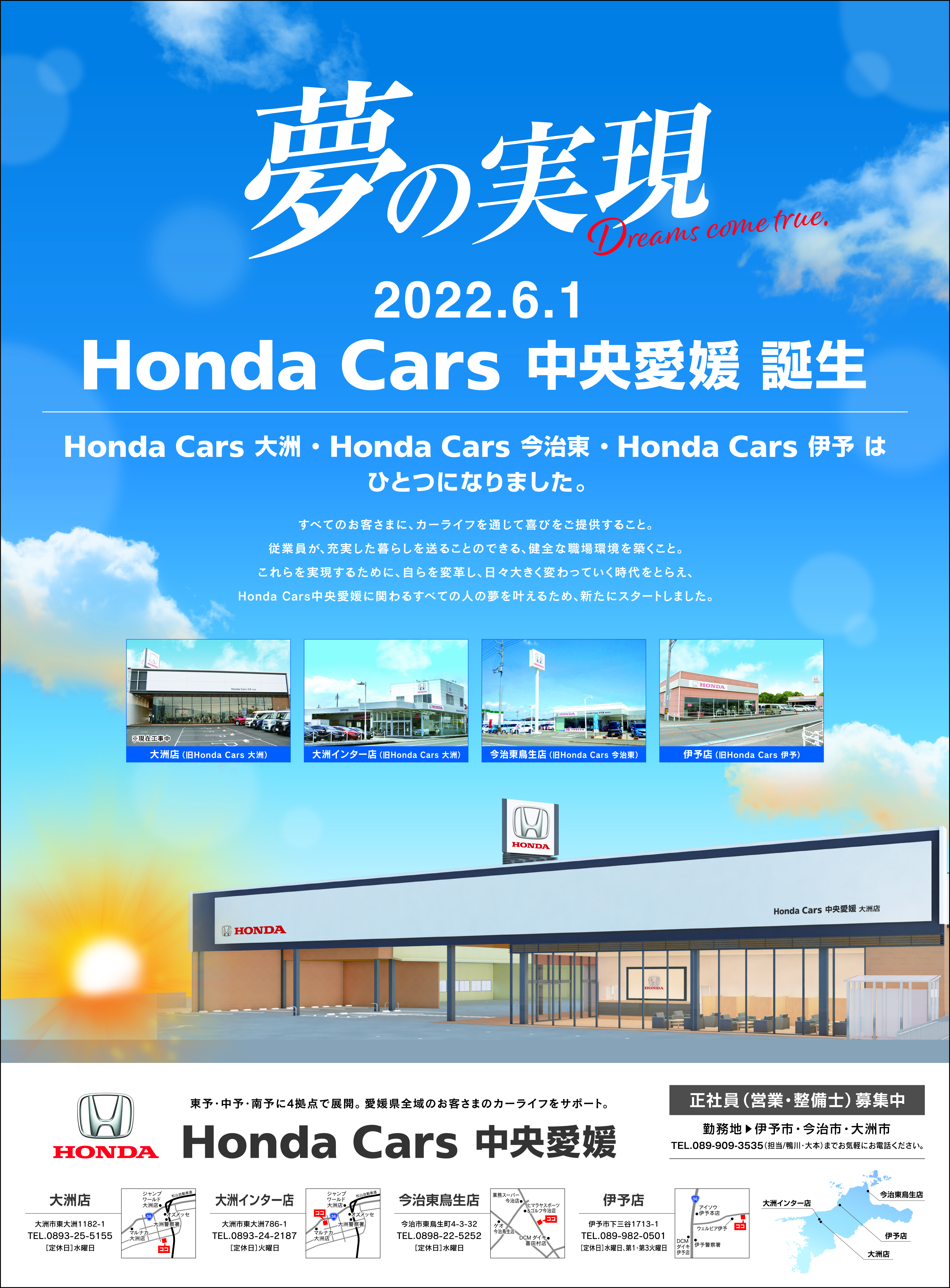 ホンダ 今治 喜田村-愛媛県 今治市「Honda Cars 愛媛 喜田村店(認定中古車取扱店)」の店舗情報ページです。「Honda Cars 愛媛 喜田村店(認定中古車取扱店)」の店舗スタッフや中古車在庫リスト、アクセスマップなど愛媛県 今治市「Honda Cars 愛媛 喜田村店(認定中古車取扱店)」の中古車在庫リスト。「Honda Cars 愛媛 喜田村店(認定中古車取扱店)」の中古車を探すなら、情報量豊富な「車選びドットコム」で!